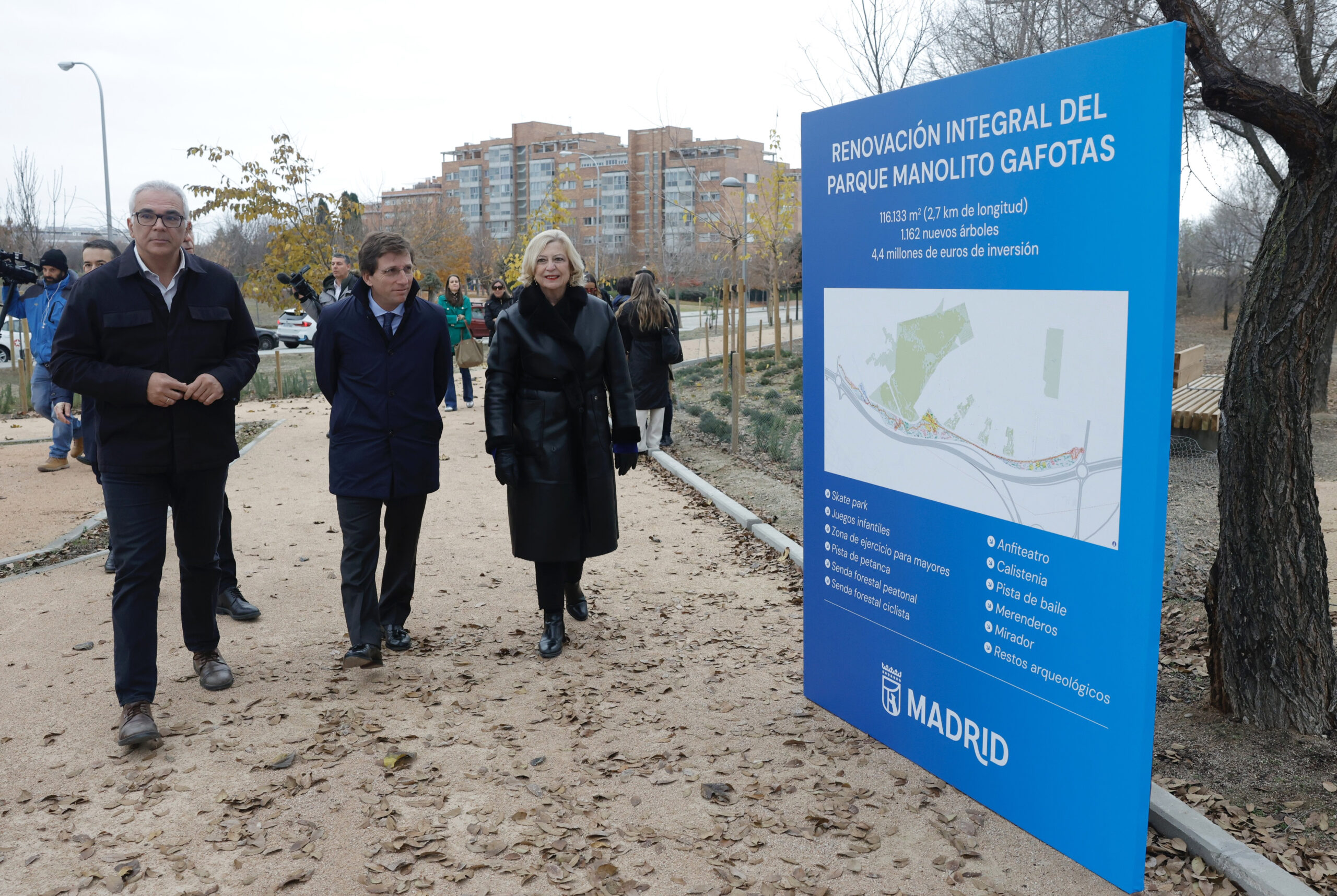 El alcalde de Madrid, José Luis Martínez-Almeida, acompañado de la delegada de Obras y Equipamientos, Paloma García Romero, y el concejal de Carabanchel, Carlos Izquierdo, ha visitado esta mañana el parque lineal Manolito Gafotas, que acaba de ser objeto de una renovación integral. La intervención en este espacio, ubicado entre la avenida de Carabanchel Alto y la carretera del Barrio de la Fortuna, en el distrito de Carabanchel, ha supuesto una inversión de 4,4 millones de euros y ha mejorado una superficie de más de 116.000 m² y 2,7 kilómetros de longitud.