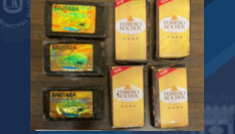 Ante la actitud del sospechoso, los agentes realizaron una inspección exhaustiva del habitáculo. Durante el registro, los policías hallaron dos bultos de color negro escondidos en la zona de los asientos. Al abrir los envoltorios, comprobaron que contenían placas de hachís con un peso total de 805 gramos.