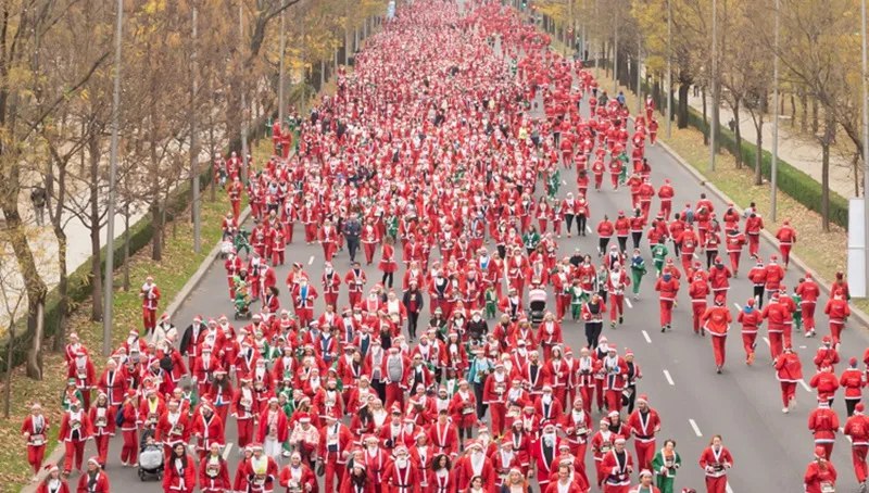 La XIV edición de la Carrera de Papá Noel El Corte Inglés volverá a teñir de rojo y blanco con los trajes de los participantes (salteado con el verde y blanco de los trajes de los elfos que lucen los menores de 12 años) el Paseo de la Castellana de Madrid el 21 de diciembre.