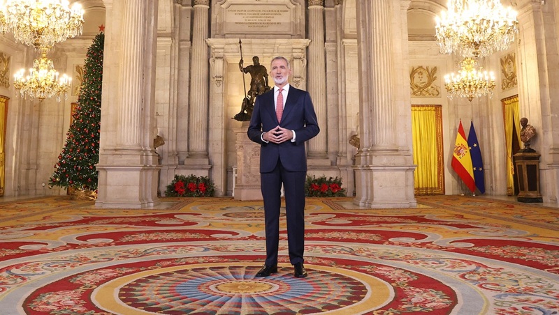 El Rey Felipe VI ha dirigido este martes su tradicional mensaje de Navidad a los españoles en un año marcado por simbólicas efemérides: el 50º aniversario del inicio de la Transición y los 40 años de la firma del tratado de adhesión de España a las Comunidades Europeas. Desde el Salón de Columnas del Palacio Real, el monarca ha articulado un discurso centrado en la «convivencia democrática», advirtiendo de que esta no es un legado inalterable, sino una «construcción frágil» que requiere un cuidado diario.