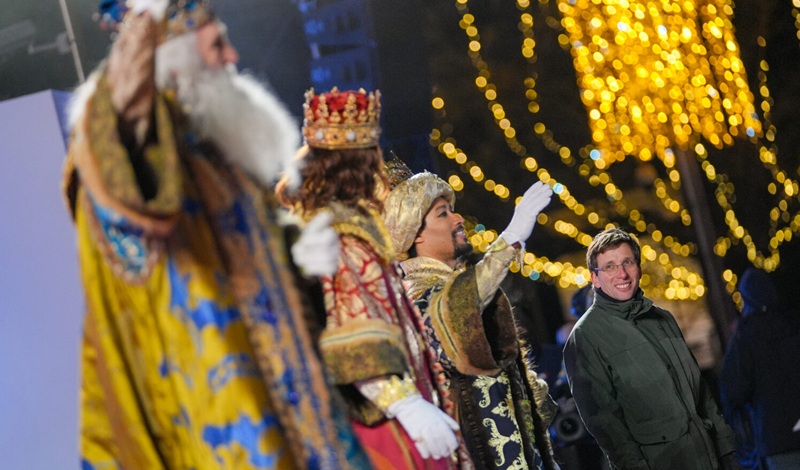Tras la llegada del cortejo real a la plaza de Cibeles, después de “adorar al Niño Jesús y transmitir su mensaje de amor y esperanza a todo el mundo”, como ha recordado el alcalde de Madrid, José Luis Martínez-Almeida ha dado la bienvenida a Sus Majestades en nombre de una ciudad maravillosa “que acoge, recibe y comparte”, les ha agradecido su presencia en Madrid “por llenar la ilusión las casas de todos en esta noche mágica”, en la que ha pedido a los Reyes Magos que no haya “ni un niño sin regalo”.