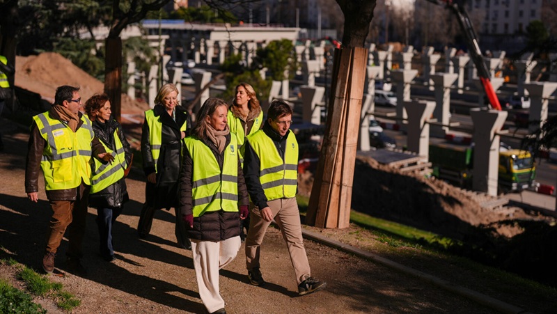 El alcalde de Madrid, José Luis Martínez-Almeida, acompañado de la delegada de Obras y Equipamientos, Paloma García Romero, y las concejalas de Salamanca, Cayetana Hernández de la Riva, y de Ciudad Lineal, Nadia Álvarez, visitó hace unos días los trabajos de Parque Ventas. Este proyecto de transformación urbana conectará peatonal y paisajísticamente los distritos de Salamanca y Ciudad Lineal en un espacio de 16.370 m2 sobre la M-30.