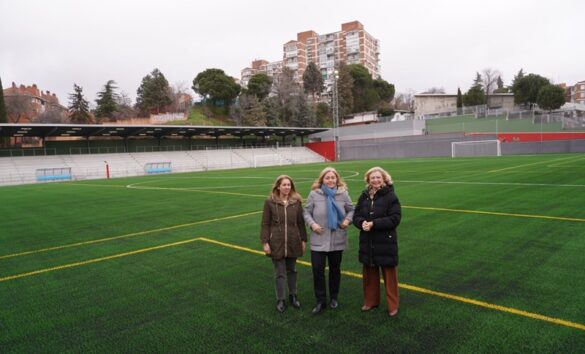 La vicealcaldesa, Inma Sanz, ha destacado esta apuesta municipal por Ciudad Lineal en la visita que ha realizado hoy al distrito para conocer la reforma integral del campo de fútbol García de la Mata, integrado en el Centro Deportivo Municipal San Juan Bautista, acompañada de la delegada de Obras y Equipamientos, Paloma García Romero, y de la concejala del distrito, Nadia Álvarez.