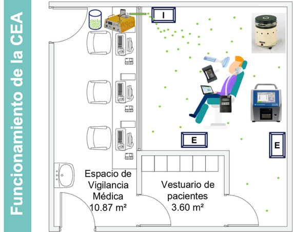Gracias a esta cámara se monitorizan los efectos que tiene la exposición al polen y otros agentes ambientales en el paciente, simulando un escenario natural. Así, durante cada prueba, el paciente cumplimenta distintos cuestionarios sobre síntomas de alergia, que facilitarán la valoración de su estado durante la exposición controlada a los alérgenos.