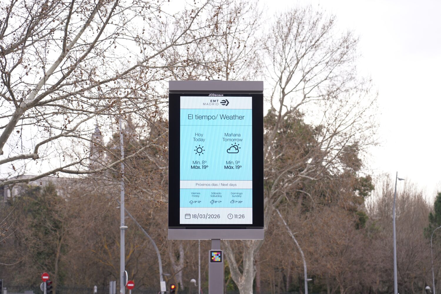 Estos dispositivos incluyen varias mejoras, entre las que destacan el cambio de formato y la capacidad para reproducir vídeos o para difundir información institucional de interés público. Hasta ahora, los PMV emblemáticos eran paneles de puntos con información del servicio de autobús en tiempo real (tiempos de espera para todas las líneas de EMT Madrid cercanas, incidencias y desvíos) e información meteorológica. A partir de ahora, toda esta información se difundirá a través de pantallas digitales de forma más dinámica y visual. Además, por lo que respecta a la accesibilidad, las nuevas pantallas incorporarán códigos NaviLens y también será posible difundir campañas institucionales relevantes para el público, así como toda comunicación que sea considerada por las autoridades ‘de emergencia’.