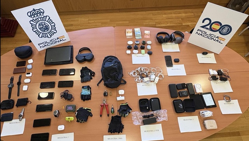 Por todos estos hechos, el pasado día 23 de marzo se procedió a la entrada y registro tanto del local que regentaba en el distrito madrileño de Latina, como de su domicilio, siendo localizados en sendos emplazamientos cuantiosos elementos tecnológicos tales como ordenadores, móviles, auriculares inalámbricos, tabletas electrónicas, altavoces, cargadores, discos duros, libros digitales y baterías.