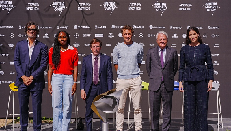 La presentación ha contado también con la presencia del presidente del torneo, Gerard Tsobanian, y su director, Feliciano López, y del vigente campeón del Mutua Madrid Open, Casper Ruud, y la finalista, Coco Gauff, que volverán a medirse en la pista para intentar revalidar su título.