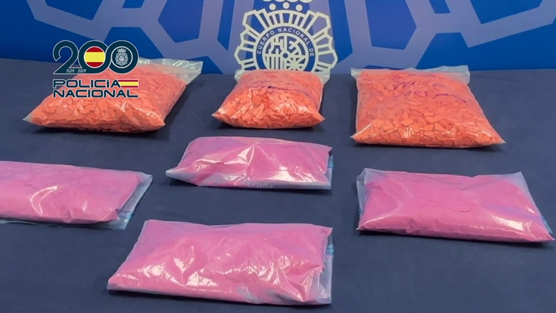 A su llegada, los agentes pudieron comprobar que se trataba de un embalaje de cartón de grandes dimensiones que en su interior contenía tres cajas, formadas por 12 bolsas transparentes en las que se mezclaban las piezas de juguete con pastillas de color naranja en forma de nube y cuatro bolsas más con sustancia pulverulenta de color rosa. En total, fueron incautadas 5.000 pastillas de MDMA y casi 800g de sustancia pulverulenta, siendo ketamina y MDMA, alcanzando un valor en el mercado ilícito de 80.000 euros.
