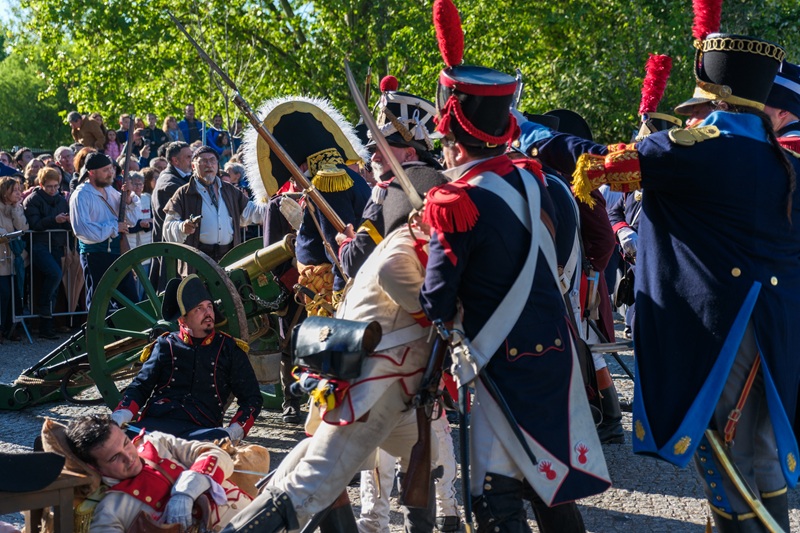 Esta escenificación teatral, de 30 minutos de duración, correrá a cargo de la Asociación Histórico-Cultural Voluntarios de Madrid 1808-1814 y reunirá a cientos de participantes, carruajes y cañones en un espectáculo que contará con dos narradores encargados de relatar al espectador lo que sucede como si los hechos se desarrollaran en ese mismo instante.