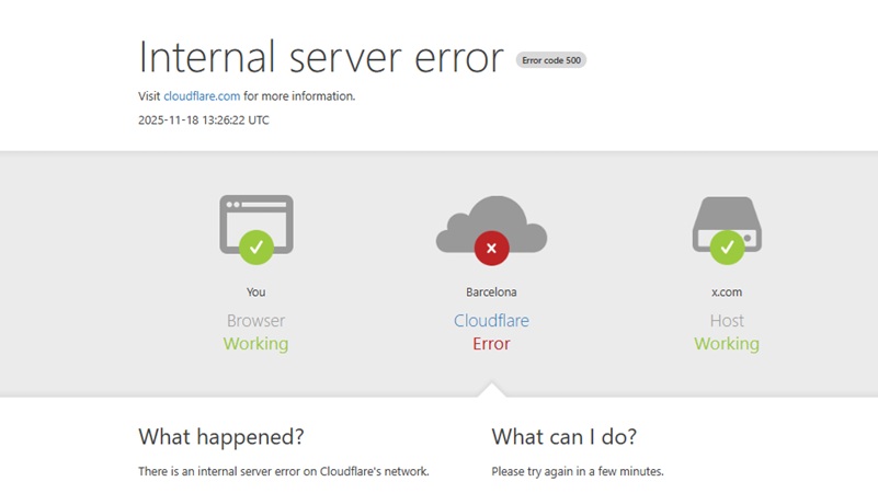 La caída masiva en Cloudflare deja sin servicio a Twitter, ChatGPT, Spotify, PayPal, Canva, Amazon Web Services y Grindr entre otros