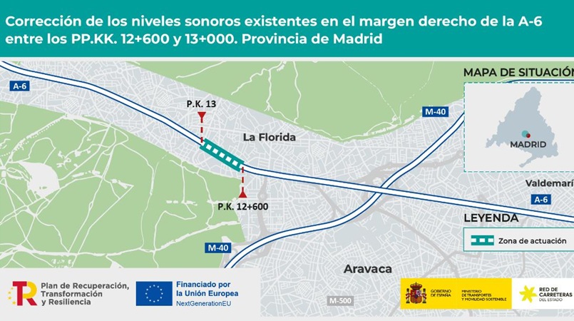 Aprobado definitivamente el proyecto de trazado para mitigar el ruido de la A-6 a su paso por Madrid