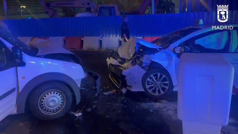 Tres heridos en la colisión frontal entre un taxi y una furgoneta junto al Bernabéu (Madrid)