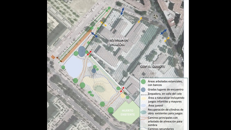 El Ayuntamiento destinará 1,75 millones de euros a acondicionar y renaturalizar el entorno del CEIP El Quijote (Villa de Vallecas)