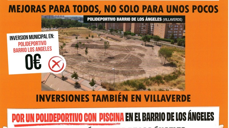 Vecinos de Ciudad de los Ángeles (Villaverde) se manifiestan este jueves para exigir su polideportivo prometido