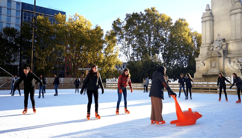 La Navideña convierte Plaza de España en un pueblo navideño con pista de hielo, un gran árbol y mercado artesanal